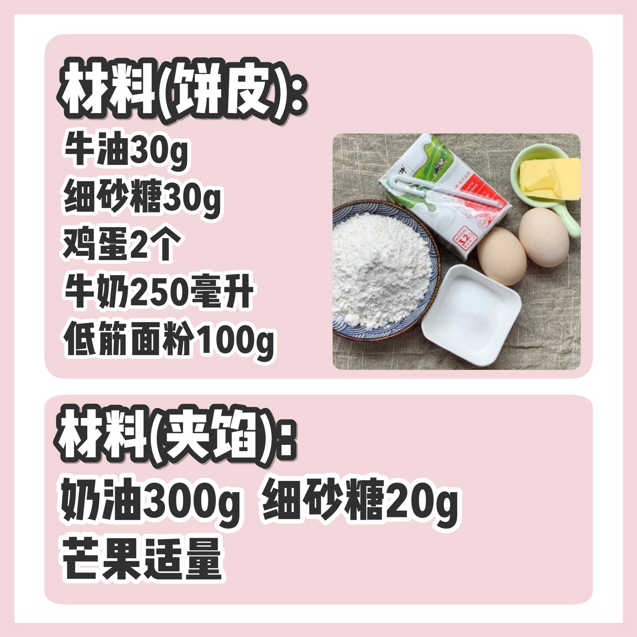 又是一道网红甜品——芒果班戟🤤!做法超简单,自己做的比外面的更好吃!而且还可以把芒果换成其他自己喜欢的水果哟!一起来学一学吧!保证一家老小都爱吃😍
