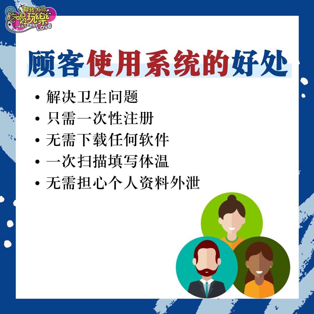 到访者无需担心整堆人排队进店而且还要共用pen来填写资料;分分钟资料还会外泄呢!到访者只需扫描商家e-JEJAK的二维码打卡记录体温即可,记录将在90天后自动删除!
